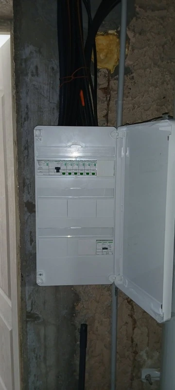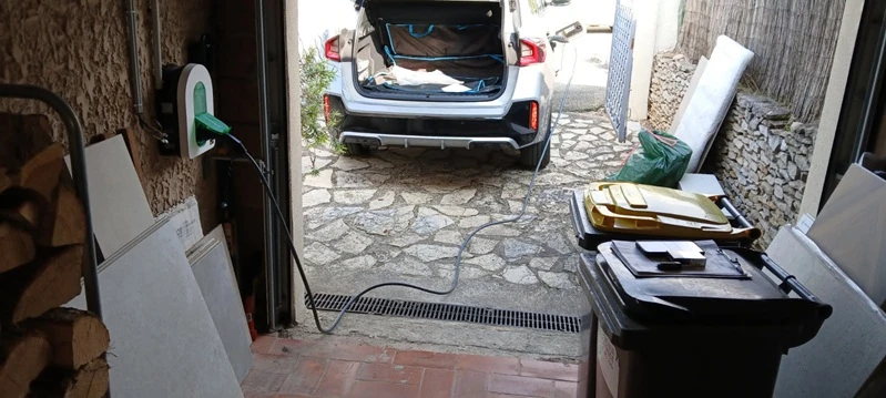 Installation d'une borne de recharge pour véhicule électrique. Création d'un tableau électrique dans le garage pour futurs travaux.