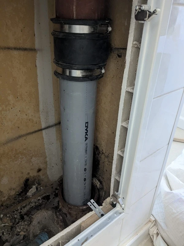 Notre plombier à Rognac (13) est intervenu pour la réparation de la colonne d’évacuation des eaux grises et la reprise de la colonne d’évacuation des WC. Pour plus de praticité, une trappe d’accès a été créée côté salle de bain, facilitant ainsi l’entretien et les futures vérifications.